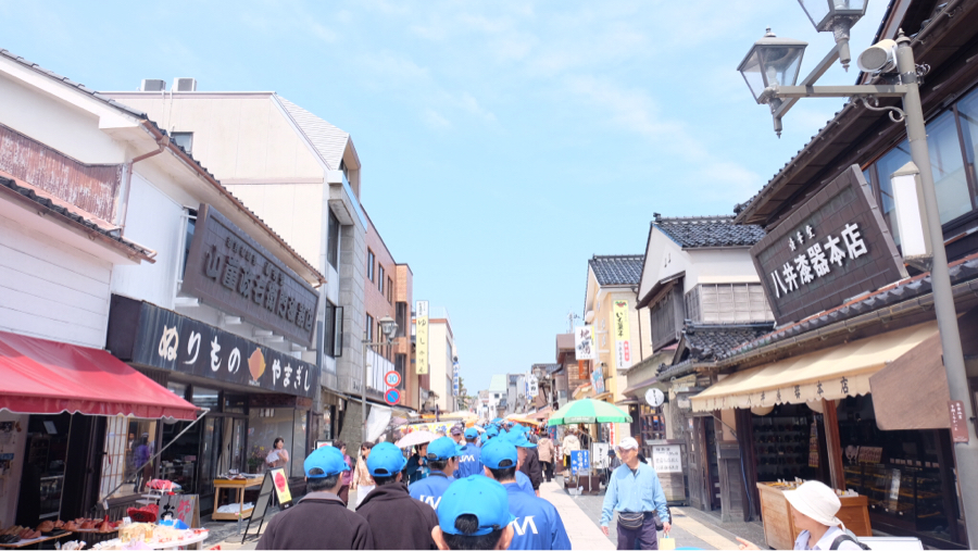 เมื่อถึง รถบัสจอดแล้วครูให้นักเรียนเดินไปยังจุดตั้งเเคมป์ จะผ่านท่าเรือและตลาดเช้าวาจิม่าครับ