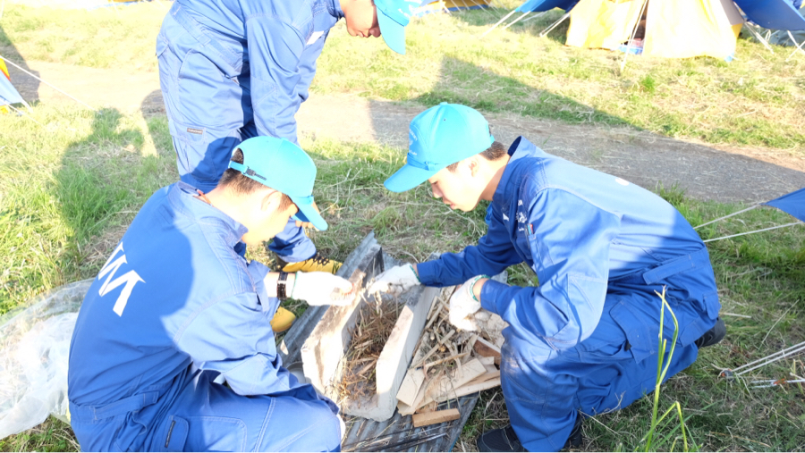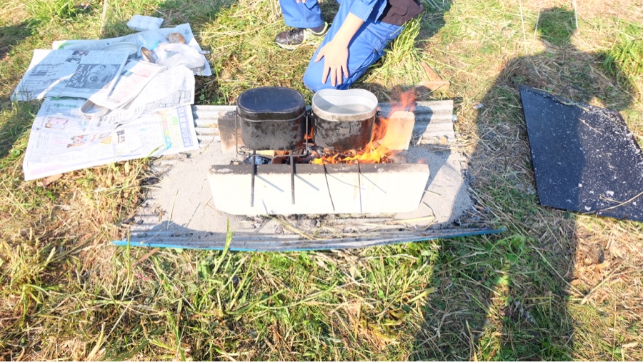 เด็กญี่ปุ่น จุดไฟกันนานมาก กว่าจะติดนี้ไม้ขีดเกือบหมดกล่องเลยครับ ไฟติดนี้เเทบร้องไห้ เมื่อไฟติดแล้วอาหารที่จะทำกินกันมื้อปรก คือ เนื้อย่างกับยากิโซบะครับ คุ้มค่าที่เสียแรงจุดไฟมาก~