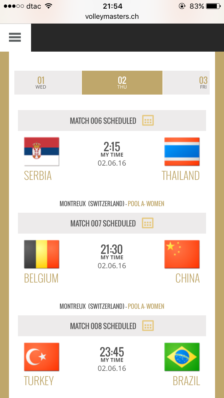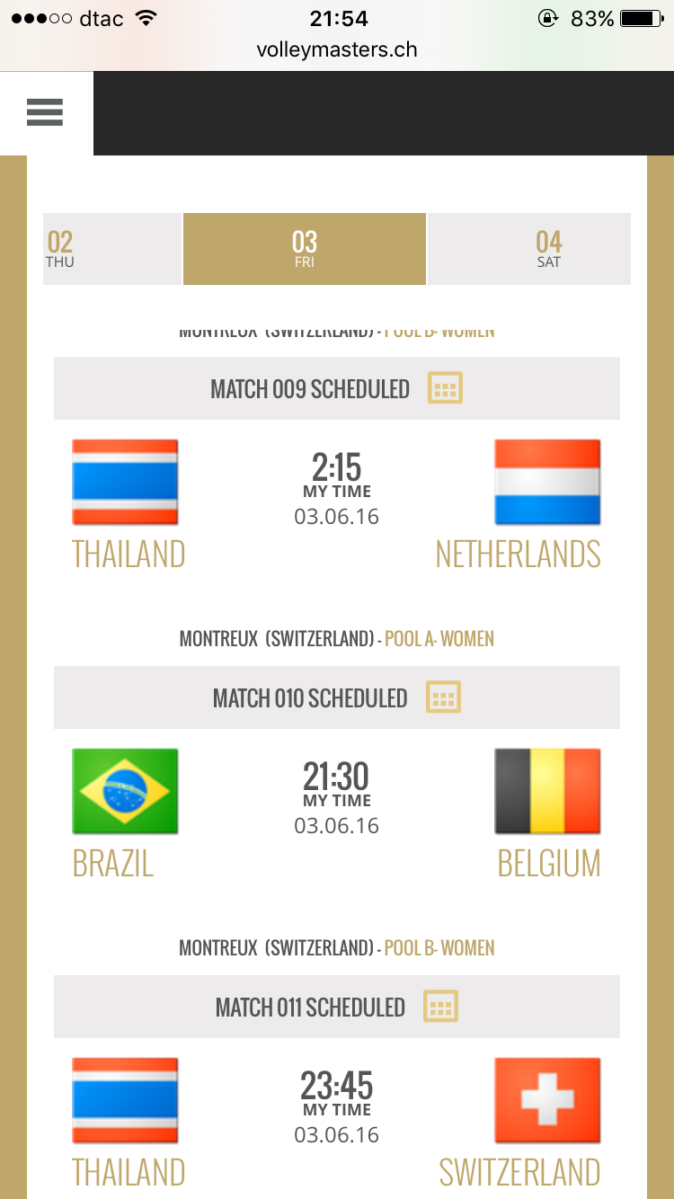 เมื่อสักครู่ ช่อง true4u โฆษณาว่ามีการถ่ายทอดสดวอลเล่ย์บอลรายการmontreux volley masters 2016 ที่ประเทศสวิสฯ ที่ไทยแข่งทุกคู่ด้วยจ้า กราบขอบพระคุณช่อง true4u ยิ่งนัก ส่วนตารางแข่ง