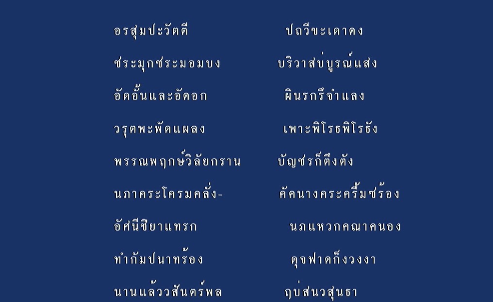 WWW.youtube.com/watch?v=Qul0b3e631k วสันตรดิลกฉันท์ ๑๔ (หิรัญ เดิมแปลว่า ทอง นานวันกลายมาเป็น เงิน แล้ว) อาลึงค์-กอด โดย-ตาม WWW.youtube.com/watch?v=4qxi-sYUT9s WWW.youtube.com/watch?v=C6sSs5oYFXk