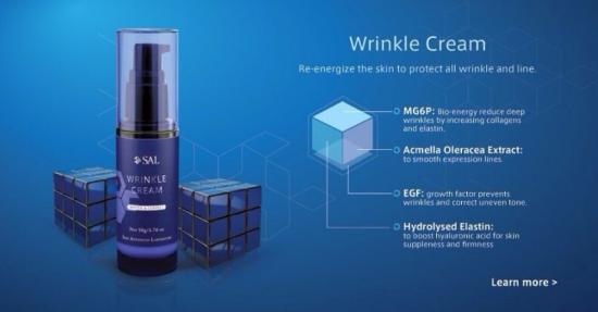 SAL Wrinkle Cream ประจุพลังงานให้แก่เซลล์ในชั้นผิวเพื่อป้องกันริ้วรอยที่ก่อตัวที่ผิวหนังชั้นในจนมาปรากฎที่ผิวหนังชั้นนอก พร้อมลดเลือนรอยย่นจากการแสดงอารมณ์