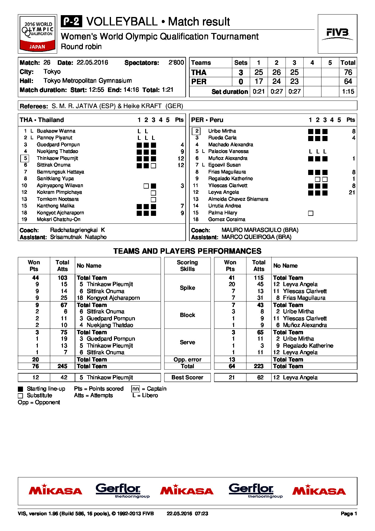 [----- เทป&lสถิติ -----] >> ไทย Vs เปรู : วอลเลย์บอลหญิงโอลิมปิก รอบคัดเลือก