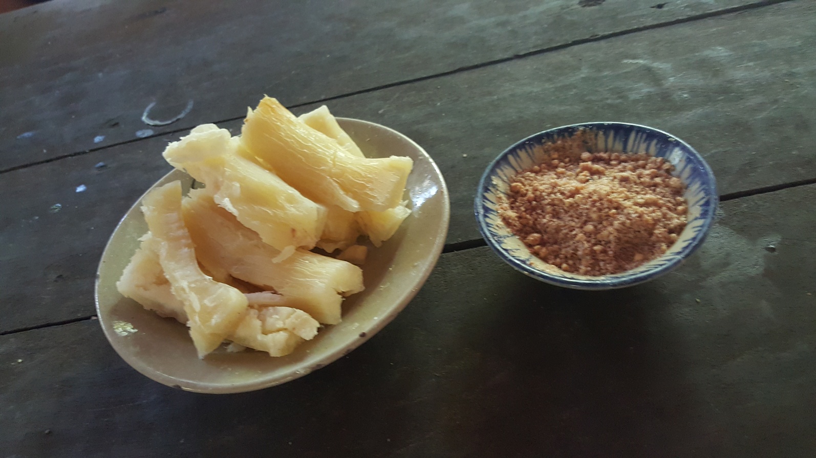 พอเดินจนครบ ก้อพามานั่งพักให้จิบน้ำชากะของว่างเป็นมันต้มจิ้มน้ำตาลคลุกกะถั่ว แปลกๆดี