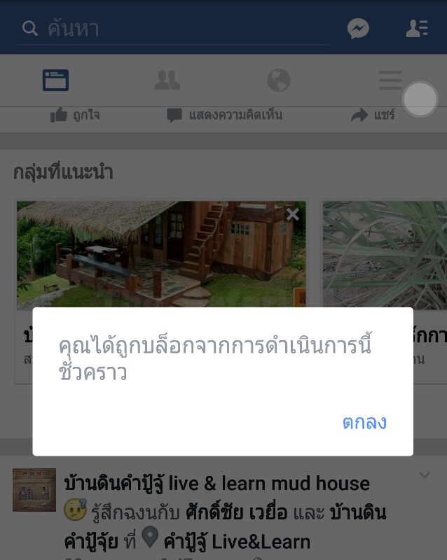 เฟสผมขอเข้ากลุ่มไม่ได้บอกบล๊อคชั่วคราวทำไงดีครับ
