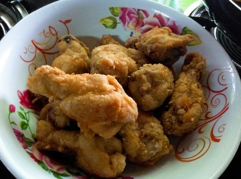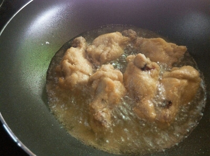 สังเกตุพอมีสีเหลืองอ่อนๆนำขึ้นได้เลยครับ (ผมทอดสองรอบนะครับ เพื่อความกรอบ)