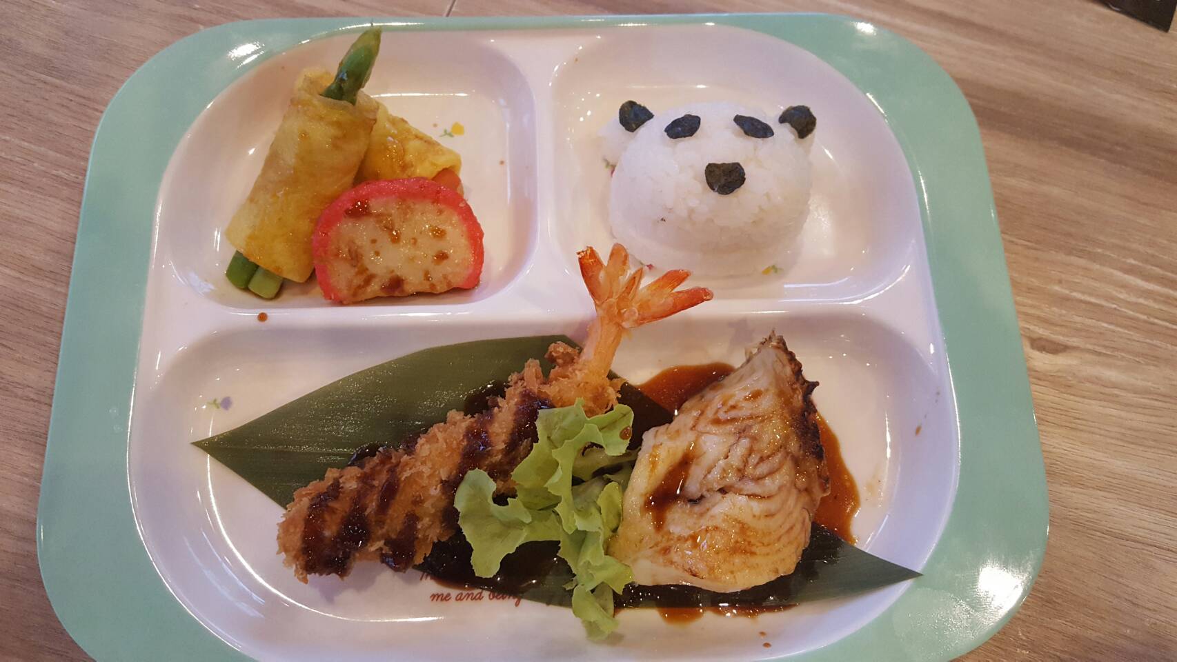 เมนูเด็ก เซตพี่หมี จานนี้สั่งเพราะว่าข้าวเป็นรูปหมีแพนด้านะเนี่ย อิอิ เป็นเซตปลาหิมะและกุ้งทอดค่ะ
