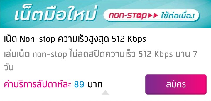 เน็ตไม่ลดสปีด512Kbps 7วันแค่ 89บาท ระบบเติมเงิน