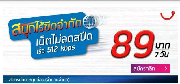 คุณเริ่มใช้เหมา89บ./สัปดาห์ เน็ตไม่จำกัด เร็ว512Kbps หักค่าบริการทุก 7วัน