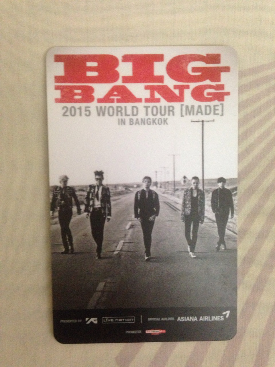 อันนี้ภูมิใจมากที่ได้ไป จำได้ว่าจัดครั้งแรก บัตรแพงสุด 2,000 บาทจ้า จัดที่ราชมังคลากีฬาสถาน ครั้งนี้ไปกะเพื่อน 2 คน เพื่อนเป็นติ่ง bigbang เราตอนนั้นก็ชอบแต่ยังไม่ถึงกะติ่ง แต่น่าสนุก บัตรก็ราคาไม่รากเลือกมาก(ตอนนั้นเก็บเงินโคตรเก่งแล้วก็มาใช้ซื้อบัตรคอนเสิร์ต 555) คอนครั้งนี้ประทับใจมากค่ะ ได้เพื่อนชาวสิงคโปร์ที่มาดูด้วยแล้วเป็นคอนแรกของ Bigbang ที่ไทยที่เราคิดว่าเล่นก็เต็มที่แล้วคุ้มสุดๆ รู้สึกว่าใช้เวลานานมาก ได้ใกล้ชิดศิลปินมากเหมือนกัน คอนนี้ได้ แบงค์ dirty cash กลับมา เพื่อนเราตาดี เห็นเอฟเฟคลูกโป่งแตกแล้วแบงค์ปลิวเลยรีบเก็บ บางคนเก็บไม่ทันเพราะโฟกัสบนเวที