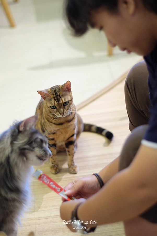 เพราะฉนั้น เราจึงต้องหาวิธีกระชับมิตร ซึ่งทางร้านก็มีตัวช่วยจัดไว้ให้ในตระกร้า อันละ 25 บาท นั่นก็คือ ขนมแมวเลีย!!! ซึ่งได้ผลเกินคาดครับท่านผู้ชม!!