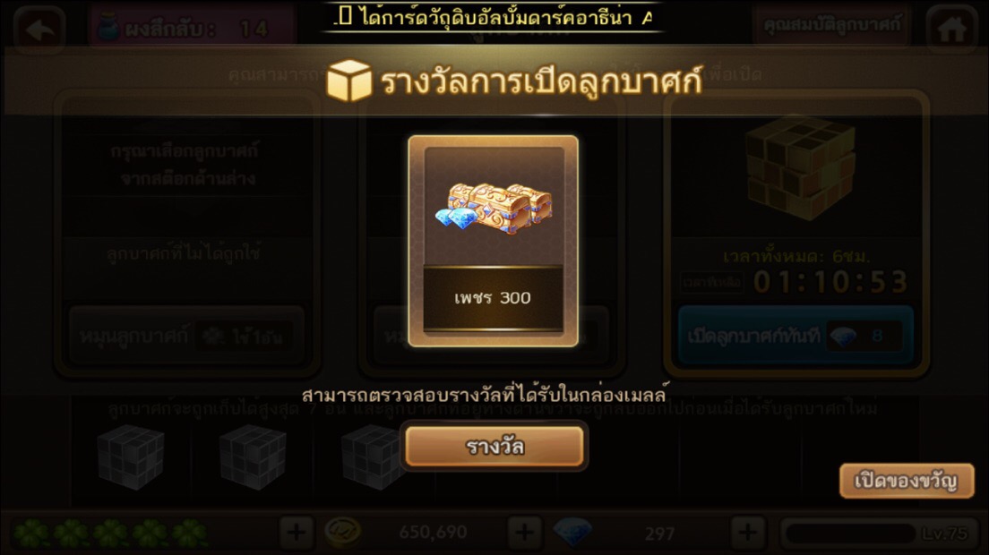 เผื่อว่าจะได้ลูกบาศก์เพชร 2ลูก มีใครเปิด ลบ เพชร แล้วได้ซองเขียว ซองแดง แพคคู่ บ้างครับ