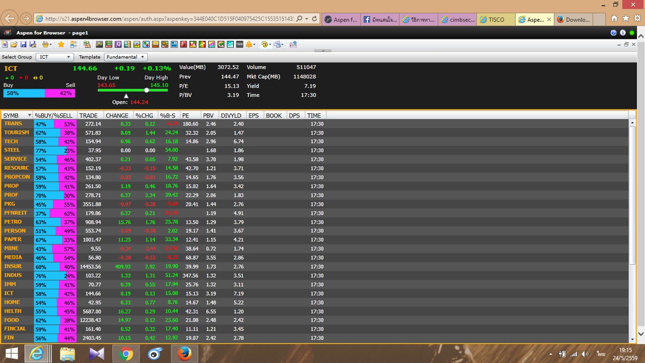 ปัญหามีอยู่ว่า ตอนที่ผมเลือกกลุ่มอุตสาหกรรมในหน้า market overview มันควรจะแสดงรายชื่อหุ้นที่อยู่ในกลุ่มนั้นๆรึเปล่าครับ แต่ของผมพอเลือกแล้วมันไม่เปลี่ยน เช่นในรูป เลือก ICT ตรงกรอบด้านล่างก็ยังคงโชว์ข้อมูลหุ้นกลุ่มต่างๆเหมือนเดิม ใครพอทราบวิธีแก้บ้างครับ รบกวนผู้รู้ด้วยครับ ขอบคุณครับ