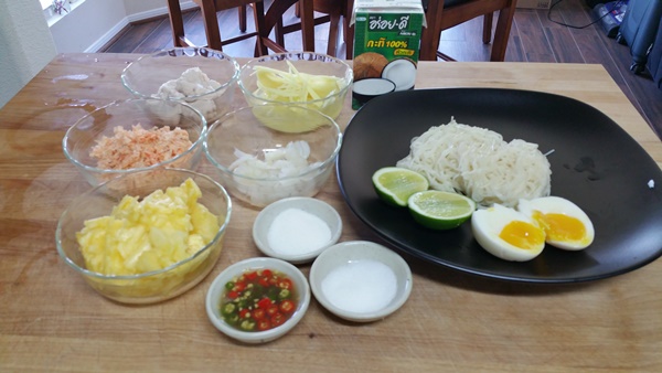 สำหรับเพื่อน ๆ ที่อยู่ต่างประเทศ เส้นขนมจีนที่ตาเอามาทำ จะเป็นเส้นที่มีขายในร้านเอเชียทั่วไปนะคะ เป็นเส้นญี่ปุ่น หรือ เกาหลี เป็นเส้นเล็ก ๆ เอามาต้ม นาที ก็ได้เส้นเหนียวนุ่มเหมือนเส้นขนมจีนบ้านเราเลยค่ะ