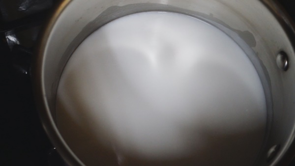 เอากะทิตั้งเตาไฟอ่อนนะคะ พอกะทิเดือด ปุดๆ