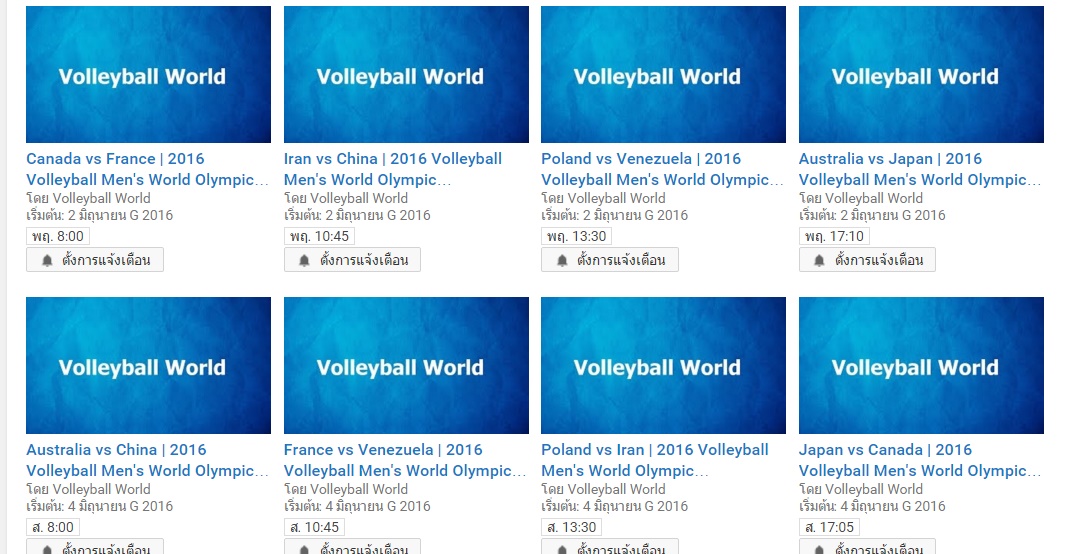 อย่าลืมส่งแรงใจเชียร์หนุ่มๆที่กำลังจะแข่งขันวอลเลย์บอลรอบคัดเลือกที่ญี่ปุ่นเพื่อไปแข่งที่Rio กันด้วยนะ แต่สำหรับUSAไม่ต้องเพราะนางไปรอคนอื่นที่Rio รักใคร ชอบใครอย่าลืมส่งแรงใจเชียร์ ขี้เกียจทำตาราง แคปหน้าจอเลยแล้วกัน ตามเชียร์ได้ในสตรีมสดทางยูทูป สำหรับชะนีน้อยต้องชาแนลของVolleyball World