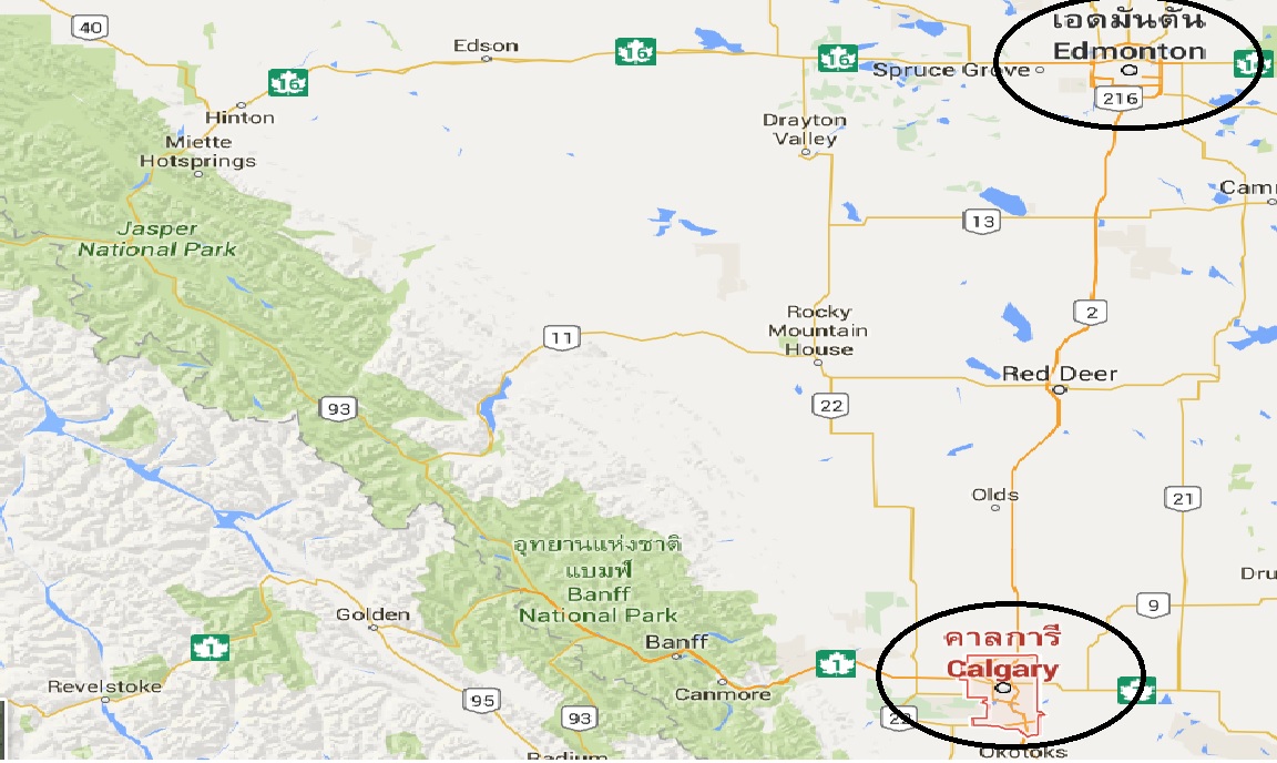 การจะไปเที่ยว Canadian Rockies นั้น ถ้าบินไปจะไปลงที่สนามบิน Edmonton หรือสนามบิน Calgary ก็ได้ เพราะเป็น International Airport ทั้งคู่ และเป็นเมืองที่อยู่ใกล้ๆกัน แต่เราเลือกที่จะไปและกลับจาก Calgary เพราะไม่ต้องคืนรถเช่าต่างสนามบิน ทำให้เสียเงินเพิ่มขึ้นอีกเยอะ แต่ที่สำคัญกว่านั้น มีสมาชิกในทริปเราต้องกลับก่อน ซึ่งจากเมือง Banff ไป Cangary แค่ 1.30 ชม.เท่านั้น
