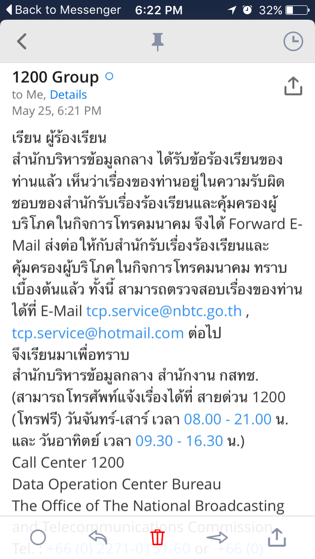 Dtac คะ ขออนุญาตส่งเอกสารส่งกลับถึงทาง กสทช. นะคะ