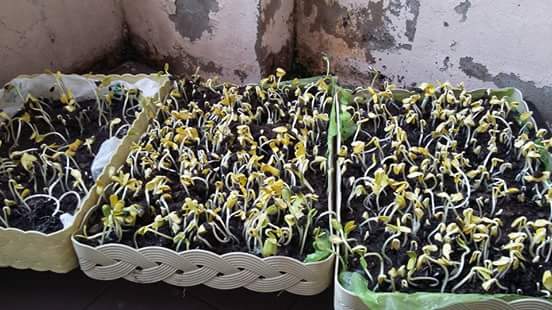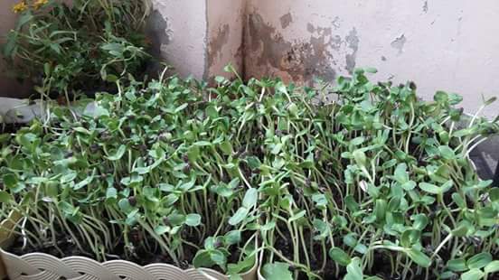อันนี้วันที่ 4 เห็นลักษณะต้นมีสีเหลืองแบบนี้ไม่ต้องแปลกใจนะคะ เพราะมันยังไม่ได้รับแสงแดดเลย ยังไม่ได้สังเคราะห์แสงเพราะอาจารย์ที่สอนปลูกแนะนำว่าค่อยเอาออกแดดวันที่ 6-7 ที่เราจะเก็บมาปรุงอาหารคะ