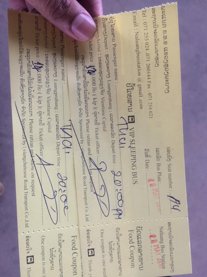 ผมซื้อตั๋วรถกลับรอบ 2ทุ่ม เป็นรถนอนวีไอพี นอนจริงๆ เดียวจะพูดทีหลัง ราคา 140000กีบ (700บาท)