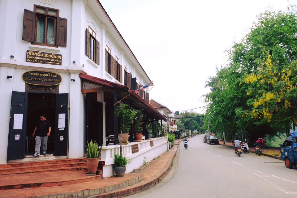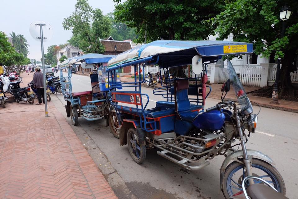 จากนั้นเราต้องเข้าเมือง เพราะรถจอดห่างจากเมืองประมาน 2-3 โล โดยนั่งรถตุ๊กๆไป ได้ราคา 15000กีบ/คน (60บาท/คน) ต่อรองได้ แต่ผมขี้เกียจต่อละ หากใครอยากได้ที่พักราคาถูกก็ให้หาแถวๆนี่ได้ ราคา 150+ แต่ผมเลือกที่จะพักในเมืองเพราะมีถนนคนเดิน จะได้เดินดูเมืองได้