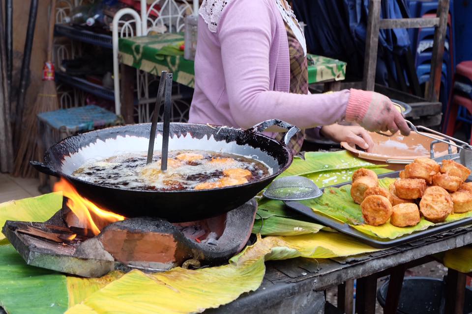day3.วันนี้ผมตื่นเต้นเป็นพิเศษเพราะว่า จะเดินทางไปหลวงพระบาง เมืองมรดกโลก ที่ใครๆก็ใฝ่ฝันอยากจะไปให้ได้ และเป็นครั้งแรกที่ผมจะได้ไปหลวงพระบางด้วย ผมตื่นแต่เช้าเก็บกระเป๋า เพราะรถจะมารับผม 9 โมง โดยผมได้ซื้อตั๋วเอาไว้ตั้งแต่แรกที่มาถึงแล้ว โดยต้องนัดกันว่าจะไปรอที่ไหนเอง ผมไปรอที่ร้านที่ซื้อตั๋วเลยครับ จะมีรถมารับและไปส่งเราที่ขนส่งสายเหนือ เพื่อไปขึ้นรถตู้อีกทีหนึ่ง ระหว่างรอเวลาผมก็ออกไปหาอะไรทานที่ตลาดเช้า หาไม่ยากครับ เพราะเมืองวังเวียง เป็นเมืองเล็กๆ