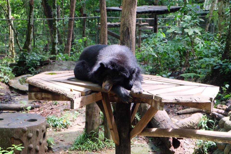 ทางเข้าจะมีหมีที่ถูกจับได้ แต่ฝรั่งขอซื้อชีวิตไว้ อุทยานเลยเลี้ยงไว้ มีหลายตัว