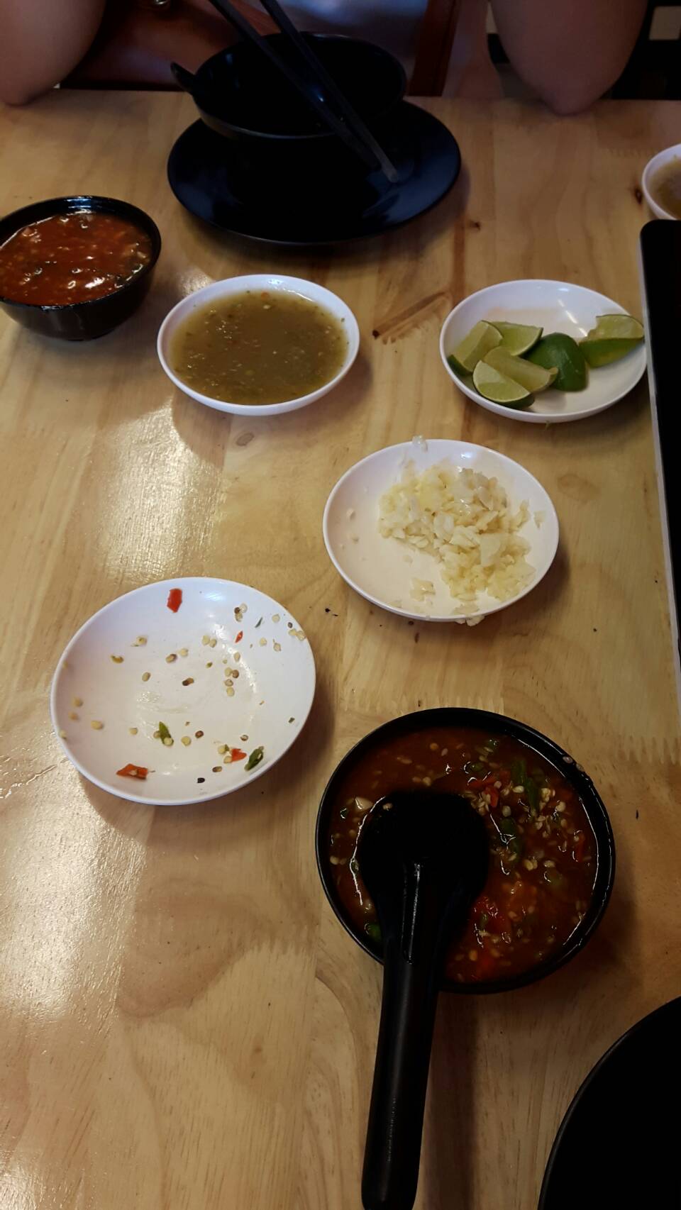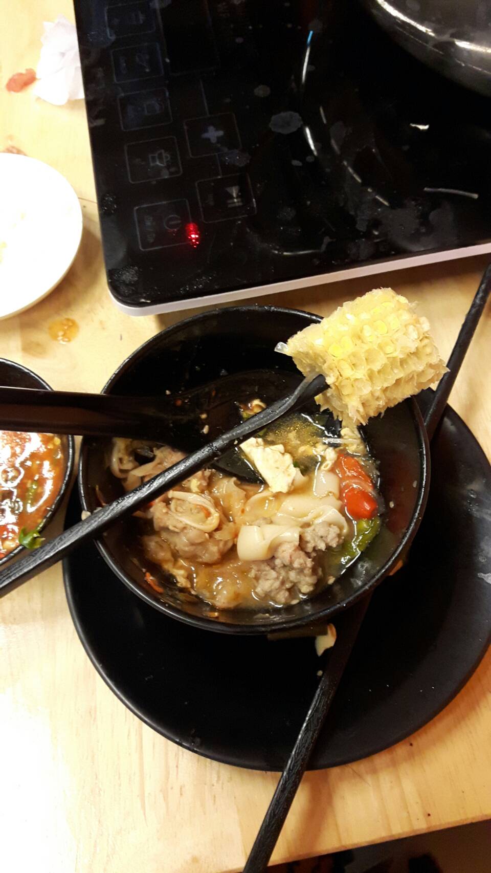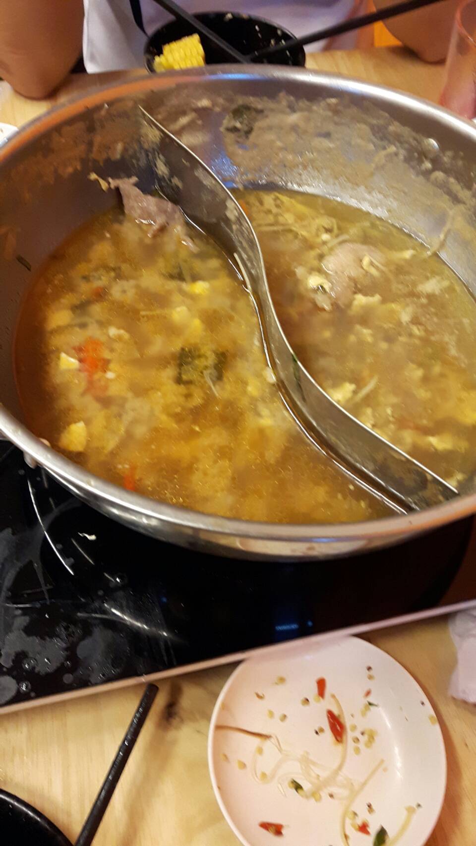 เริ่มกันเลย ร้านนี้พิกัดอยู่ในรามสองตรงข้ามตลาดนัมเบอร์วันใกล้ๆกับมหาวิทยาลัยราม 2 ในเรื่องของรสชาติสำหรับจขกท.อยู่ในระดับอร่อยคะแต่ว่าพี่กับน้องที่ไปด้วยบอกว่ารสชาติกลางๆไม่ถึงกับอร่อยเวอร์วังเพราะพวกเขาคอบุปเฟต์กัน ไปกินกันมาหลายร้านแล้วส่วนเราเพิ่งจะเข้าสู่วงการ 😊😊😊😊😊😊😊 ส่วนน้ำจิ้มอร่อยคะ.หม้อใส่น้ำซุปก็ใส่น้ำซุปได้สองอย่างน้ำซุปก็มีหลายอย่างให้เลือก จขกท. เลืกน้ำซุป 18 มงกุฏและต้มยำ อร่อยดีคะ (ใบเลือกน้ำซุปลืมถ่ายมา) ส่วนรายการอาหารตามรูปที่ถ่ายมาเลยคะ หมูอร่อย กุ้งกับปลาหมึกก็ตามราคาคะ ไม่ได้ตัวใหญ่มากแต่สดดี แต่หอยเชลล์ไม่ค่อยสดเท่าไร ส่วนราคาบุฟเฟต์ก็อยู่ที่คนละ 199 บาทไม่จำกัดเวลา ส่วนน้ำจะเป็นแบบรีฟิลคิดคนละ20 บาทมีน้ำอัดลมและก็น้ำใบเตย น้ำอีกอันจำไม่ได้ส่วนบรรยากาศในร้านอาจจะไม่ค่อยเงียบเท่าไรเพราะร้านอยู่ติดถนนอาจจะได้ยินเสียงรถวิ่งผ่านการบริการจัดว่าดีเด็กเสริฟ์บริการดีพูดจาดี พอเดินเข้ามาก็รีบมารับลูกค้าเลยย