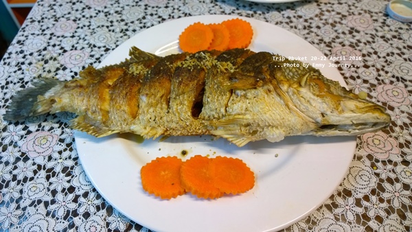 ปลากะพงทอดน้ำปลา ตัวนี้ 300 บาท ตัวใหญ่อยู่นะ