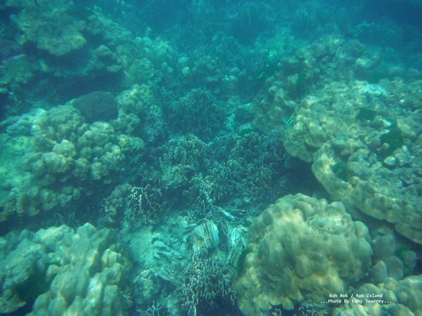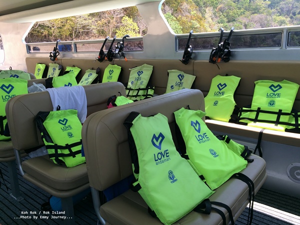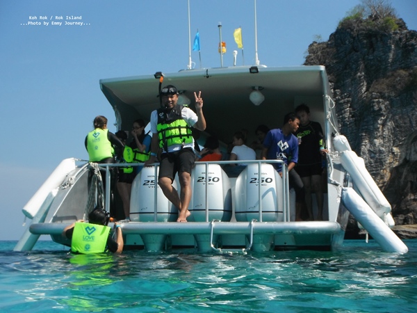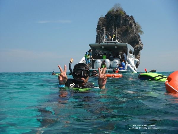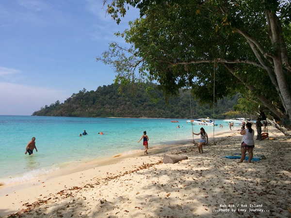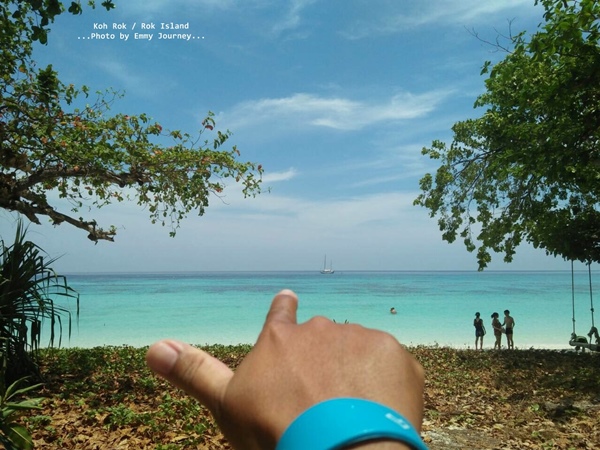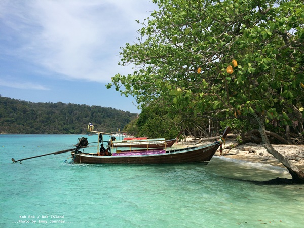 ใช้วลาประมาณ 1.30 -1.45 ชั่วโมงเราก็เดินทางมาถึงเกาะรอก (วันที่ไป 21 เมาายน 2559 คือ ตั้งแต่เรือออกจากฝั่งนี้นั่งคลื่นกระแทกตลอดเวลา นั่งเด้งดึ้งกันไปจนถึงเกาะรอก เจ็บลำไส้มาก )