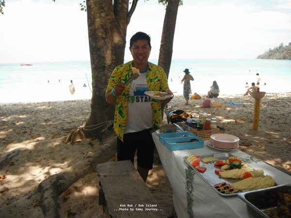 ทางเลฟอันดามันให้เวลาทานอาหารประมาณเกือบชั่วโมง ก่อนพาไปเล่นน้ำอีกฝั่งของเกาะรอก