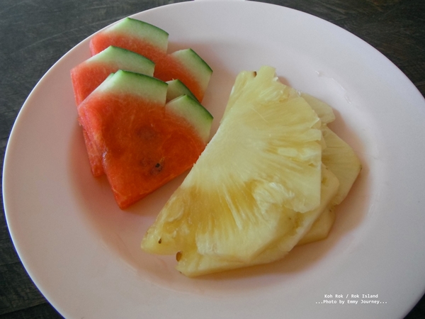 วันที่สองเรามีโปรแกรมไปเที่ยวเกาะรอก (1 Day Trip) รถตู้มาแต่เช้าประมาณ 6.30-7.00 น. เราต้องรีบตื่นมาทานอาหารเช้าให้ทันเวลา แล้วไปวนรับคนจนครบก็มามาส่งที่ท่าเทียบเรือ
