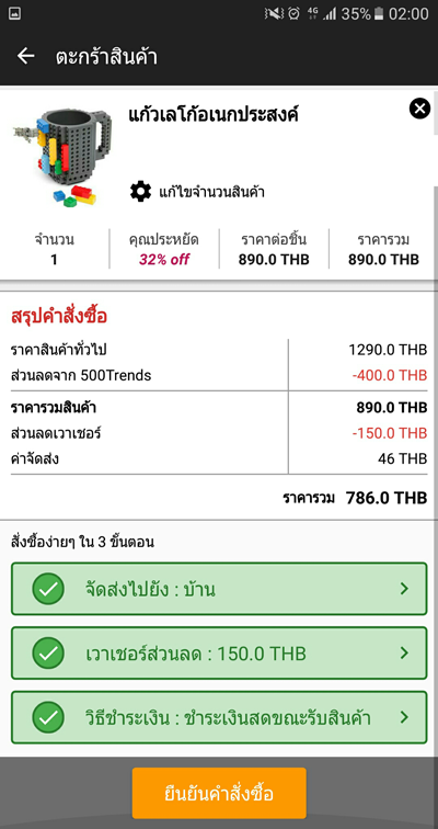 เท่านี้ก็ครบทุกขั้นตอนแล้ว จากนั้นก็กดยื่นยันคำสั่งซื้อ แล้วก็นอนรอของมาส่งที่บ้านแบบชิลล์ๆ ได้เลย อ้อ!! เราลืมบอกอย่างนึงค่ะคือการจัดส่งของแอพนี้จะจัดส่งโดยพนักงานจัดส่งสินค้าของแอพเองนะคะ ของไม่บุบ ไม่พุพังแน่นอนค่ะ สบายใจได้เลย ทางแอพยังบอกอีกว่าของจะส่งถึงภายใน 1-3 วันแน่นอนค่ะ