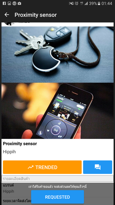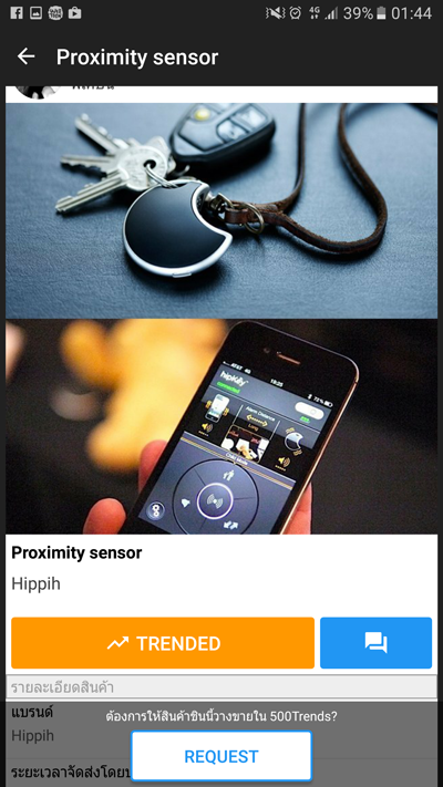 แต่แอพนี้มีข้อควรรู้นิดนึงค่ะ คือถ้าดูไปดูแ แล้วเห็นสินค้าบางชิ้นที่ไม่มีราคาโชว์เอาไว้ นั่นคือสินค้าที่ยังไม่มีขายในแอพค่ะ แต่ถ้าเราอยากได้ของชิ้นนี้มากๆ จะทำยังไงให้ได้มาครอบครองดีนะ ง่ายๆ ค่ะ ก็แค่กดปุ่ม Request ด้านล่างค่ะ ถ้ามีคนมากดรีเควสท์ครบตามจำนวนที่ทีมงานตั้งไว้ ของชิ้นนั้นก็จะได้นำมาวางขายในแอพพลิเคชั่น 500Trends ค่ะ ซึ่งนอกจากกดปุ่ม Request เองแล้ว เรายังสามารถแชร์เพื่อให้เพื่อนๆ มาช่วยกันกดได้ด้วยนะคะ พอมีคนกดถึงยอดปุ๊บ ก็จะมีข้อความแจ้งเตือนมาที่เรา พร้อมกับส่วนลดในการซื้อของชิ้นนั้นค่ะ ดีใช่ไหมล่ะคะ ทั้งได้ของที่อยากและได้ส่วนลดพิเศษด้วย ซึ่งเทรนด์รีเควสต์สินค้านี้ กำลังมาเลยนะคะ