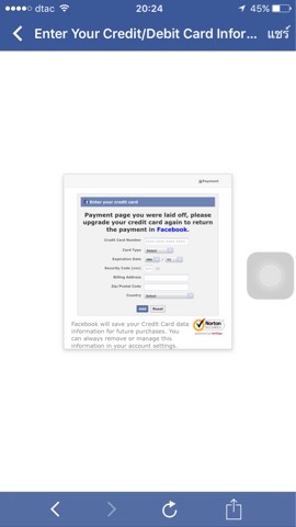 เพจ facebook โดนรายงาน ทั้งที่เป็นเพจรูปธรรมดา พอเข้าไปยืนยันตัวตนตามลิงก์ มีให้ใส่เลขที่เครดิต สงสัยโดนแฮ๊ก(มีรูป) ทำ
