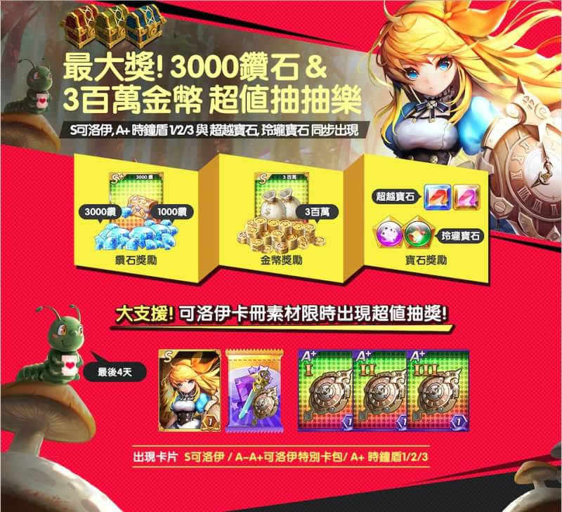 เมื่อได้ การ์ด A ดาบนาฬิกา 1/2/3/4 นำไปอัพแล้วรวมกับ การ์ด A อะไรก็ได้ ลุ้นฟรี การ์ดโล่นาฬิกา 1/2/3 (สุ่ม)