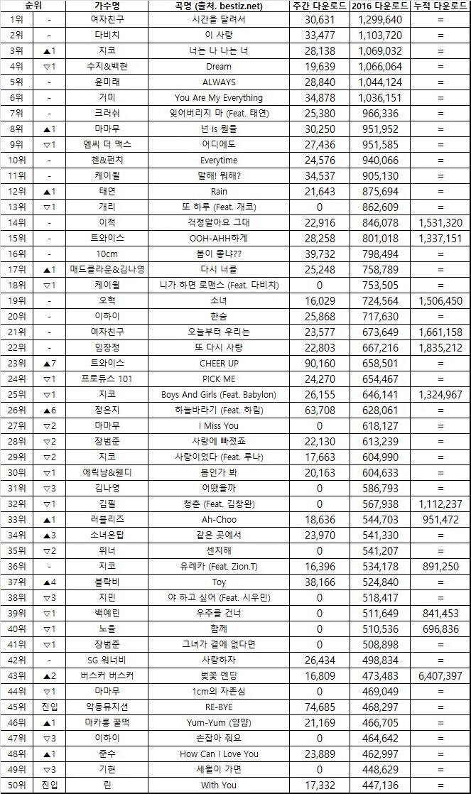 อัพเดทยอดดาวน์โหลดของเพลงเกาหลีตั้งแต่วันที่ 27-12-2015ถึง 21-05-2016