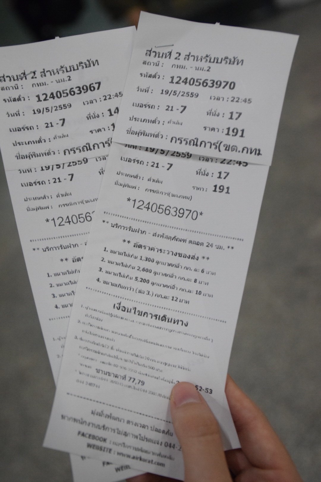 เราเริ่มต้นกันที่ สถานีขนส่งหมอชิต ชั้น 2 เราจะเดินทางไปกับ รถทัวร์ของแอร์โคราชพัฒนา อยู่จุดขายตั๋วที่52 มีรถออกทุกครึ่งชั่วโมง ราคาตั๋วอยู่ที่ 191 บาท แต่ๆๆๆๆ สามารถซื้อตั๋วไป-กลับได้ในราคาที่ถูกกว่านั่นก็คือ 361 บาท (ซึ่งเราเพิ่งรู้ตอนขากลับ T^T)