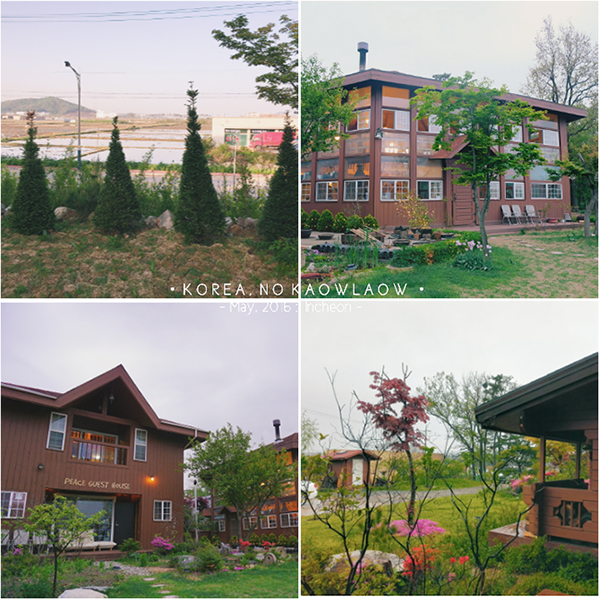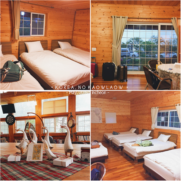ที่นี่คือดีงามมม ที่พักดีมากค่ะ อยู่ท่ามกลางธรรมชาติ ข้างหลังเป็นภูเขา ข้างหน้าเป็นแปลงนา ตรงข้ามมีมินิมาร์ทเล็กๆ เหมือนพวกเราได้ใช้ชีวิตในชนบทเลยค่ะ พวกเราชอบมากเลยนะ รู้สึกได้พักผ่อน บ้านทุกหลังเป็นบ้านไม้ค่ะ โฮสและเพื่อนๆ น่ารักด้วย ช่วยเหลือพวกเราเต็มที่ อย่างที่บอกนะคะ ว่าที่นี่เหมือนอยู่ในชนบท เพราะงั้นพวกเราเลยเข้า-ออกกันเองไม่ได้ค่ะ เพราะมันไกลจากสถานีมากกก จะเข้าหรือจะออกต้องให้โฮสรับ-ส่งตลอด แต่เป็นบริการของที่นี่นะคะ ส่งที่สถานียองจงหรืออุนซอฟรีค่ะ อยากจะเข้า-ออกตอนไหนก็นัดแนะกับโฮสไว้ก่อน โฮสบอกมาว่าเอนี่ไททททม์~