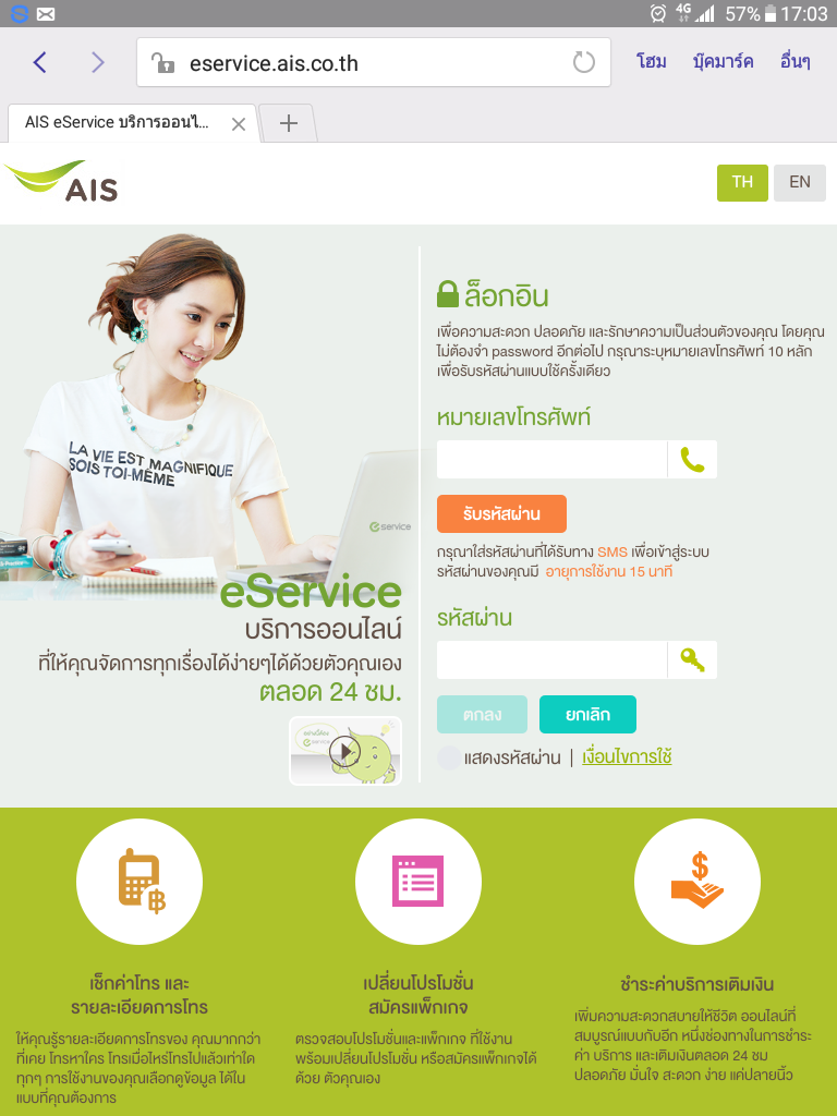 ผ่านเวปeservice หน้าจอบอกว่ารหัสผ่านที่ให้มาใช้ได้15นาที