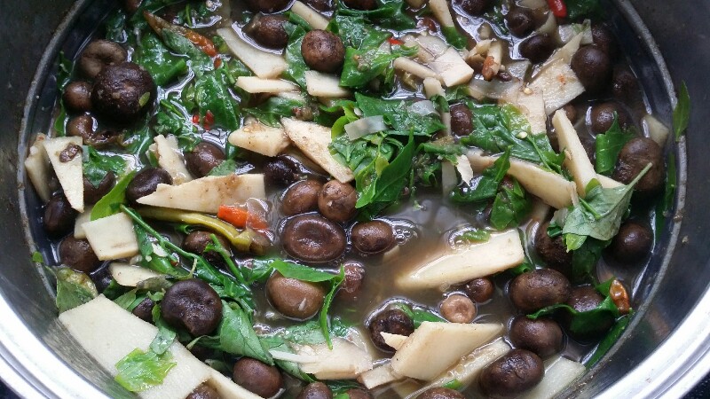 แกงเห็ดเผาะใส่หน่อไม้ ผักหวาน