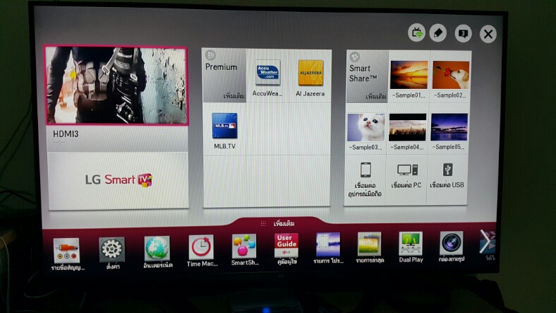 ๑. แอปของ Smart TV LG หายหมดเลย ทั้ง Youtube Bugaboo ช่องสาม ฯล เหลือตามภาพเมิ่อเรากดปุ่ม Smart บนรีโมท