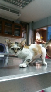 น้องเป็นลูกแมวอายุประมาณ 2เดือน เพศเมีย สามมี เกิดแถวถนนเพชรบุรีใกล้กับบริษัท วันที่ 10พค.59 จขกท.เดินไปหาไรกินในตอนเช้าๆ เห็นรถยนต์คันจึงหยุดรถ(แต่ไม่ได้สนใจ) ซักพักมีลูกแมวคลานออกมาจากใต้รถบริเวณด้านหน้า ณ เวลานั้น เราไม่ได้สนใจรถแม้แต่น้อง วิ่งเข้าไปอุ้มลูกแมวกลับบริษัท ไม่รู้ว่าอาการเป็นไงบ้าง เอาไปใส่กล่องพักไว้ก่อน