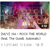 27.XIA - Rock The World 1,217,443 **ปล่อยวันที่ 28 ที่ผ่านมาถือว่าเร็วนะสำหรับยอดวิวขนาดนี้