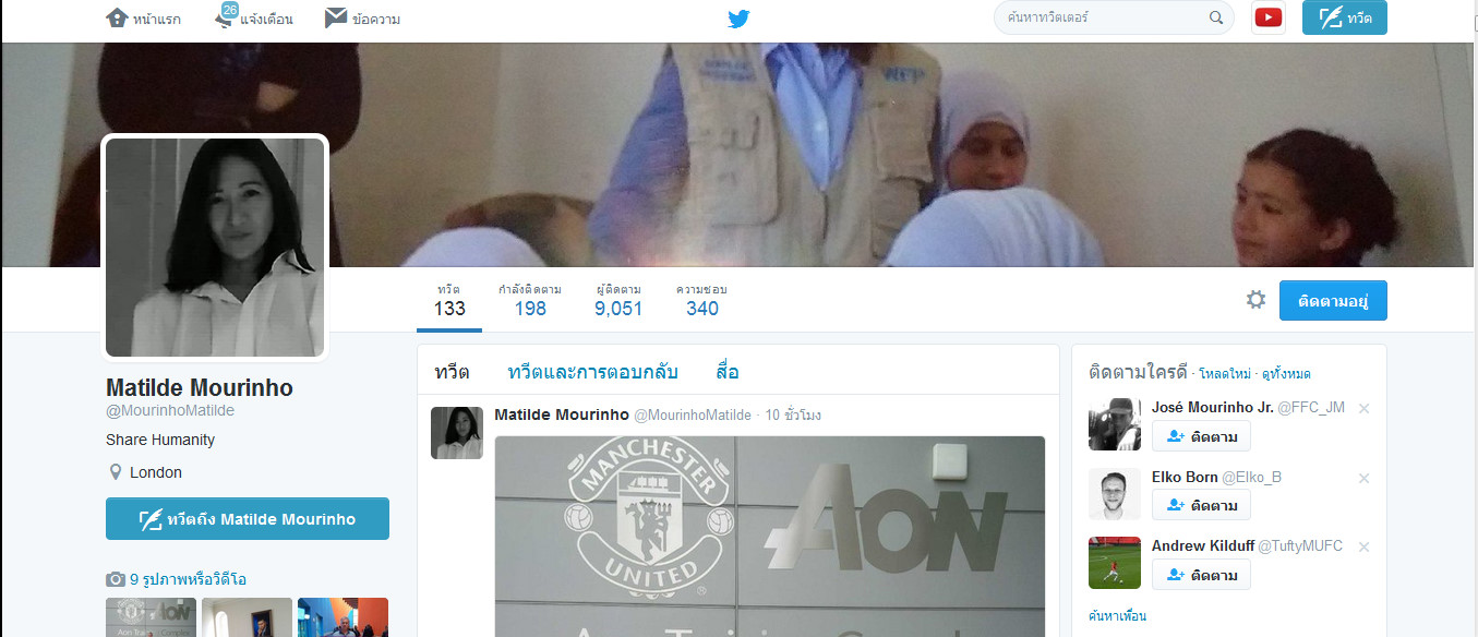 อดีตผู้จัดการทีมเชลซีเซ๋นสัญญา 3 ปีกับปีศาจแดง โดยจะเริ่มงานวันแรกในวันที่ 7 กรกฎาคม ก่อนจะพาทีมไปทัวร์อุ่นเครื่องที่จีนใน 12 วันถัดไป แต่ล่าสุดมาทิลด์โพสท์ภาพมูรินโญผู้พ่อในอิริยาบถสบาย ๆ หน้าสนามซ้อมแคร์ริงตัน พร้อมถุงช็อปปิ้งสินค้าที่ระลึกสโมสรในมือ