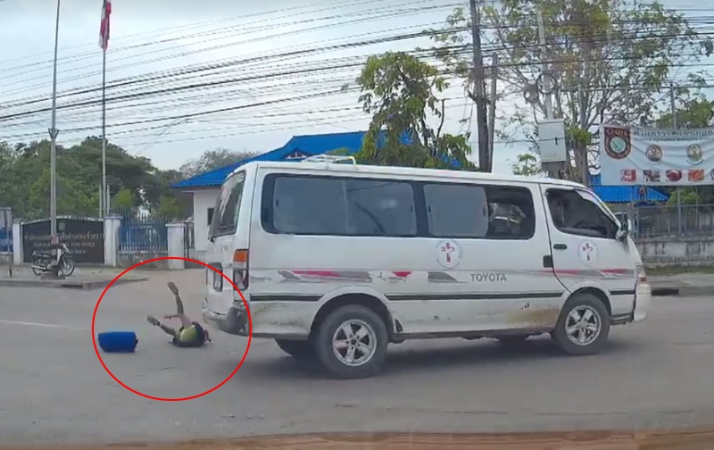 มีคลิปเด็กนักเรียนตกรถ แชร์กันที่ จ.ตาก ร่วงจากรถตู้ที่เบี่ยงออกซ้ายหักเข้าขวาทันทีเพื่อเลี้ยวยูเทิร์น กลิ้งหลุนๆ แต่ลุกขึ้นยืนได้ โดยไม่ได้รับบาดเจ็บ รีบวิ่งออกไปข้างๆ