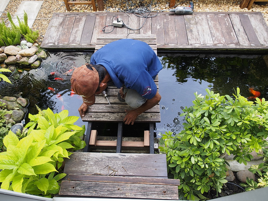 ซ่อมสะพานหน่อย โครงเหล็กผุมากแล้ว กลัวรับน้ำหนักไม่ไหวหักกลางละยุ่งเลย ตกบ่อปลาแน่