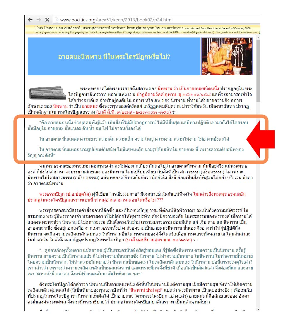 (....วันนี้ผมบอกเธอว่า "การนับถือศาสนา ลัทธิความเชื่อใดๆ เป็นสิทธิตามรัฐธรรมนูญ ผมจะไม่ดึงเธอเข้ามาทางเถรวาท ใครจะพอใจนับถือศาสนาลัทธิใดแล้วแต่ความพอใจ เพียงแต่ต้องการแยกแยะให้เห็นว่า พุทธเถรวาทไม่มี อายตนะนิพพาน ไม่มีเมืองนิพพาน วัดพระธรรมกายเป็นลัทธิที่เกิดขึ้นใหม่อย่างชัดเจน "