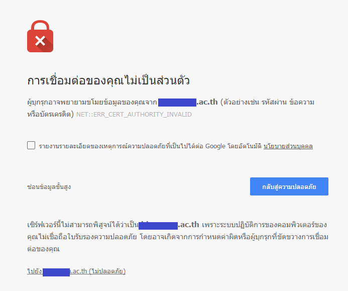 จากในรูปเราต้องกดไปยัง ...... (ไม่ปลอดภัย) เราถึงจะเข้าใช้งานระบบของมหาลัยได้