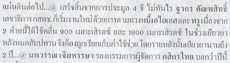 เอไอเอส และ ทรู เนื่องจาก 2 ค่ายนี่ได้ใช้คลื่น 900 เมกะเฮิรตซ์ และ 1800 เมกีเฮิรตซ์ ในช่วงเยียวยาหลังหมดสัมปทาน จึงต้องถูกเรียกเก็บค่าใช้จ่าย