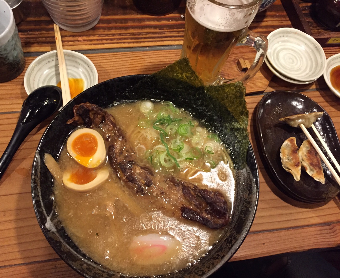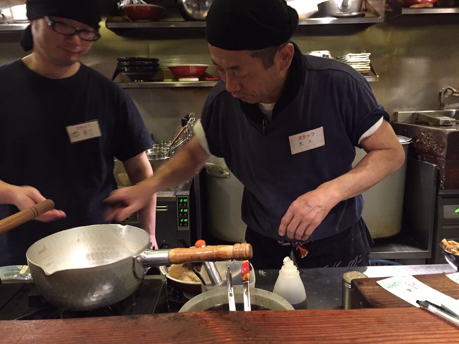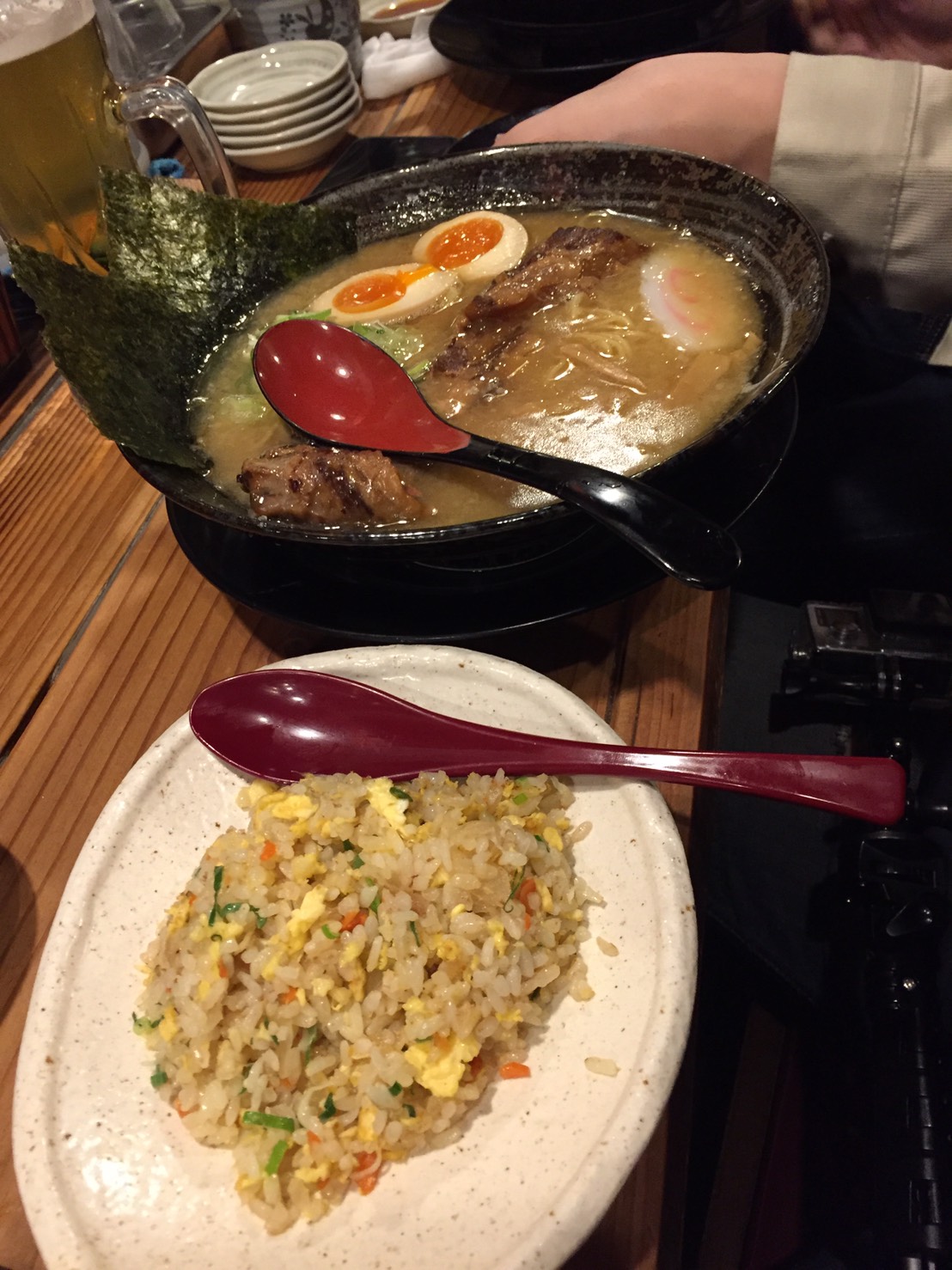 ที่ญี่ปุ่นนั้นใส่ไส้ปลาหมึกกันเป็นตัวๆเลย เอาเป็นว่ากินเข้าไปนี่ถึงกับพูดไม่ออกแน่นอน เพราะคำใหญ่มากก....ถรุยยย ! อร่อยสิครับ ในระหว่างที่กินอยู่นั้นพวกเราก็ได้คุยกับเพื่อนที่เคยมาญี่ปุ่น โดย Call Line เลยบอกเลยว่าชัดอย่างกับโทรศัพท์ปกติโทรมาเลย เค้าก็ได้บอกผมว่า ตรงไอดงทนบุรีนั้นมีราเม็งเจ้านึงอร่อยมาก พวกผมก็อ่าเอาวะมันเคยมาแล้วบอกอร่อย ก็ต้องไปลองซะหน่อย (ทั้งๆที่พึ่งกิน หมาดๆเลย) ก็เลยไปเจอเจ้านึงเดินเข้าเลยครับไม่รอช้า(ร้านที่มีทีวีเปิดโชว์ราเม้งวนเรื่อยๆ เผื่อใครอยากลอง) เนื่องจากการที่พวกเรานั้นนั่งแล้วไม่ยอมสื่อสารกันสรุปสั่งคนละเซ็ทเลยครับ(เพราะเจ้ของร้านกันเองมากครับ เชียร์เก่งกว่าเด็กเชียร์เบียร์อีกขนาดฟังภาษาเค้าไม่ออกนะเนี่ยยังต้องยอมสั่งเลย ^^”) ทั้งที่อิ่มอยู่แล้วนะเนี่ย จริงๆก็ไม่คิดว่าจะเยอะมากหลอกน่าจะกินไหวแต่พอมาจริงเข้าให้